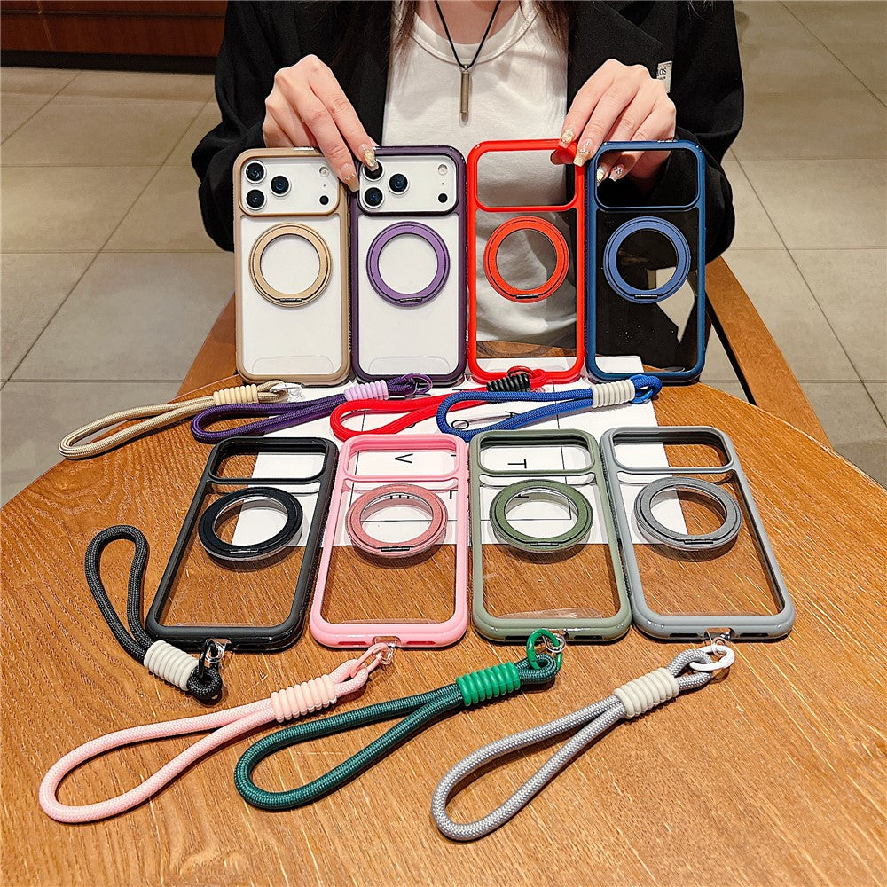 For iPhone 17 Pro Max Magnetic Case Stress Relief Kickstand TPU + PC Transparent Phone Cover with Wrist Strap - Sapphire