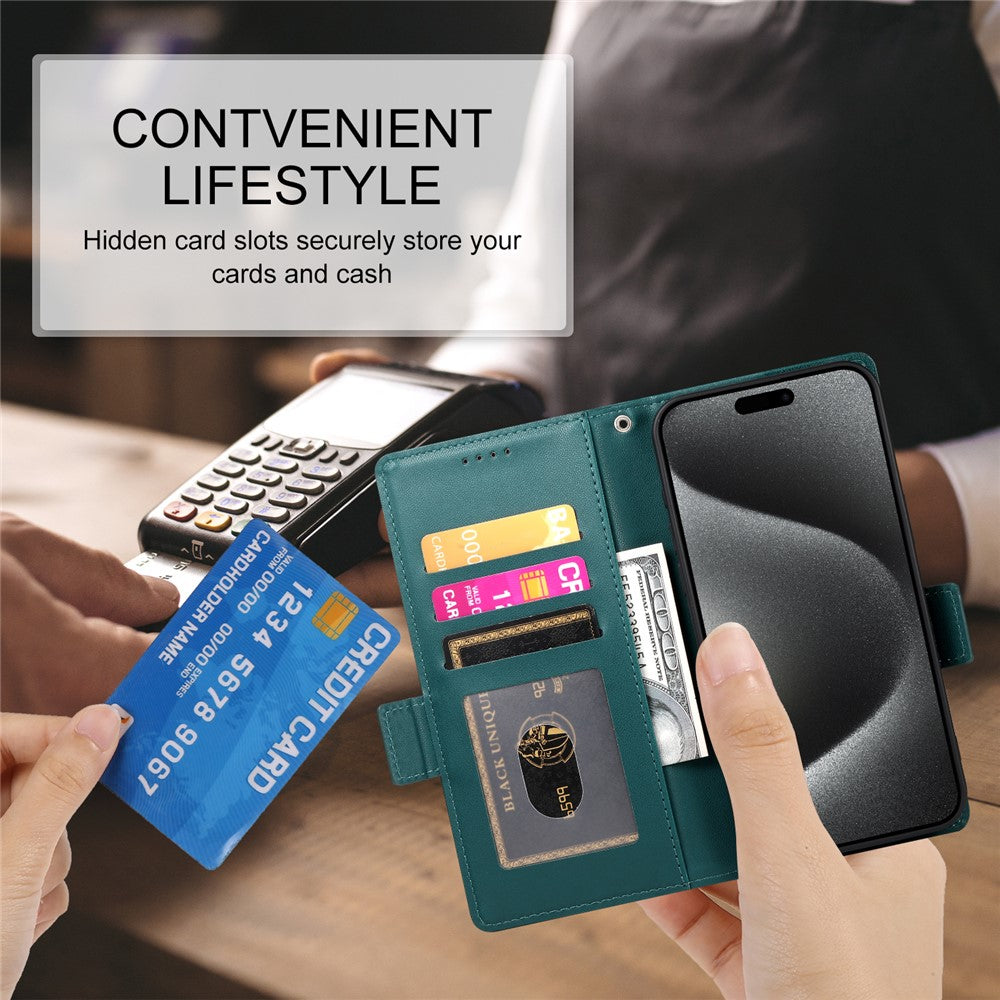 For iPhone 17 Pro Max Stand Case PU Leather Wallet Phone Cover - Blackish Green