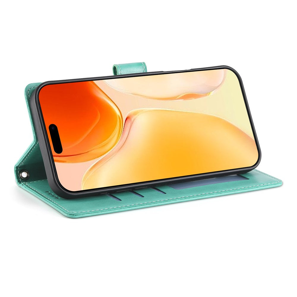For iPhone 17 Pro Max Wallet Case Butterfly Floral Imprint PU Leather Phone Cover with Wrist Strap - Green