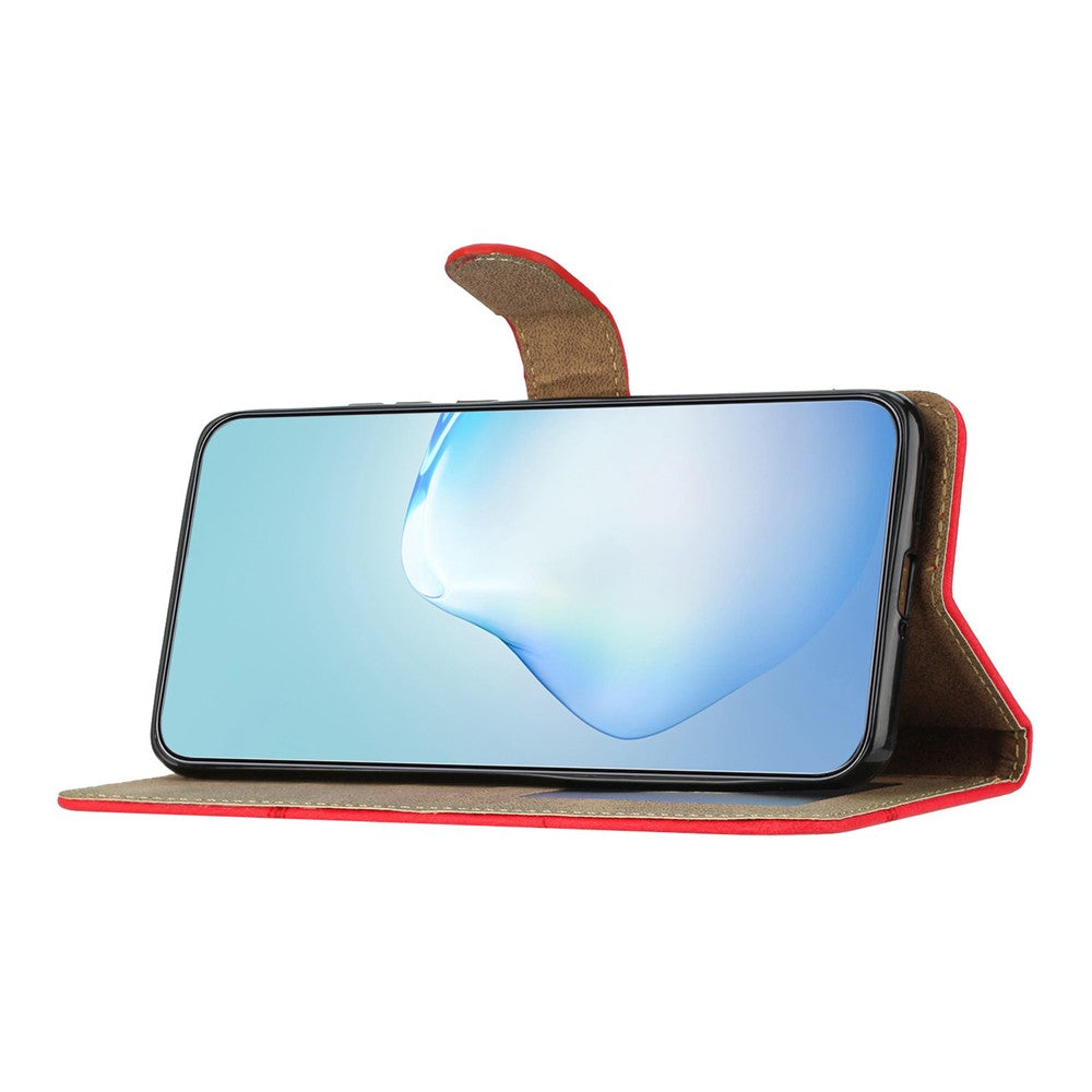 For iPhone 17 Pro Max Wallet Case Line Imprinted Skin-Touch Leather Flip Phone Cover - Red