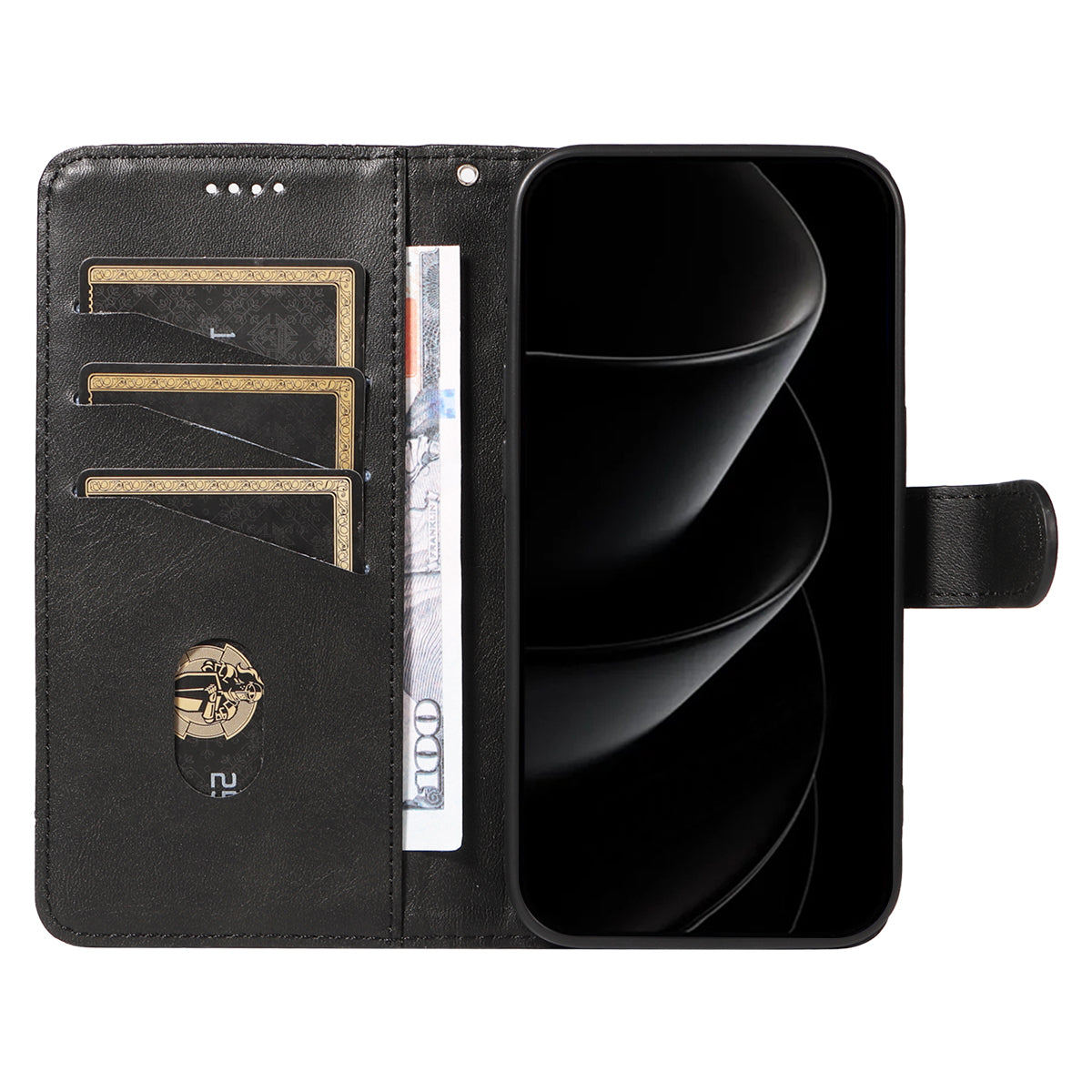 For iPhone 17 Pro Max Wallet Case T-Shape Lines Leather Phone Cover Stand -  Black