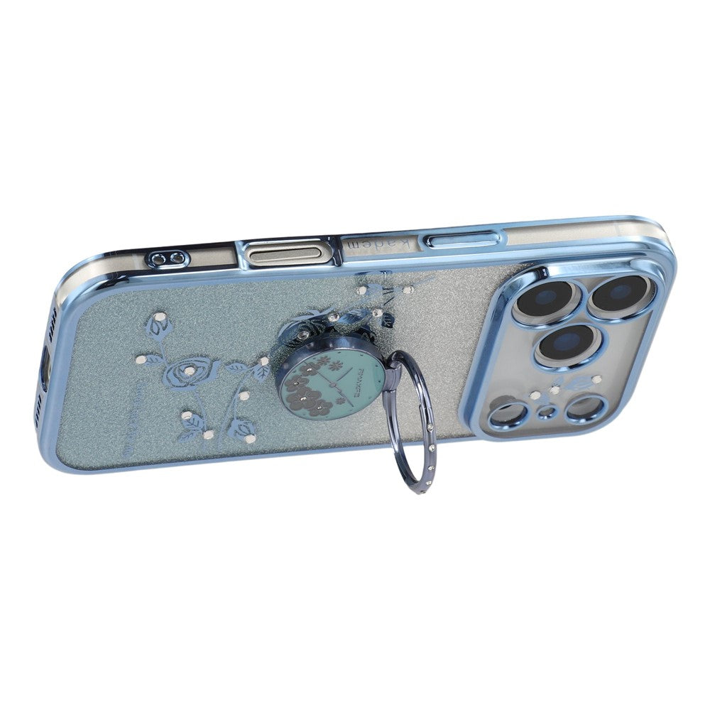 KADEM For iPhone 17 Pro Max Case Ring Kickstand TPU Flowers Phone Cover Gradient Glitter - Blue