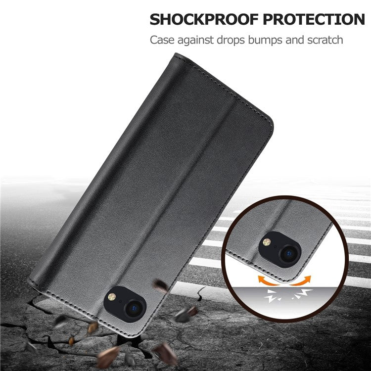 LC.IMEEKE For iPhone 16e Case Calf Texture Magnetic Clasp Stand Phone Cover - Black