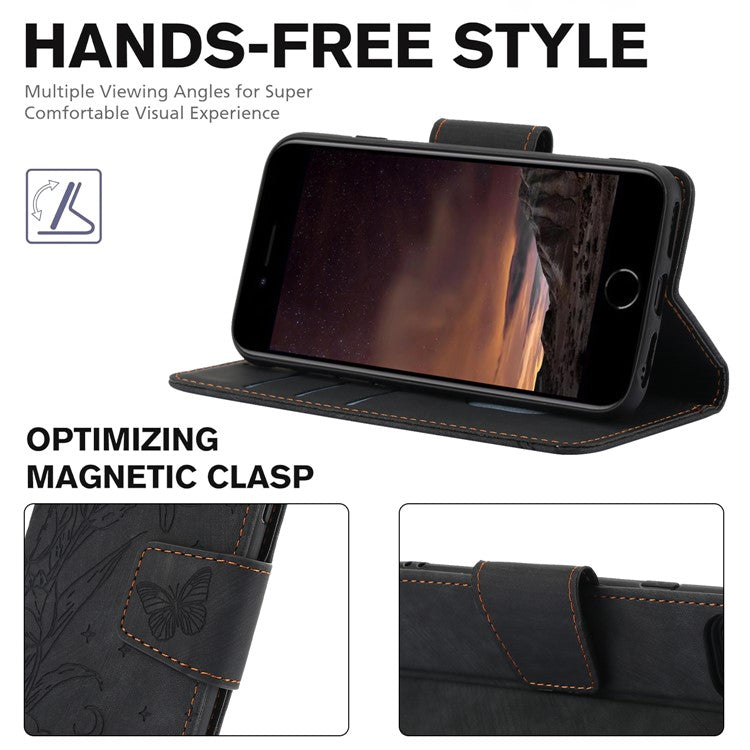SY-001 For iPhone 16e Case Butterfly Flower Anti-Scratch Leather Phone Cover - Black