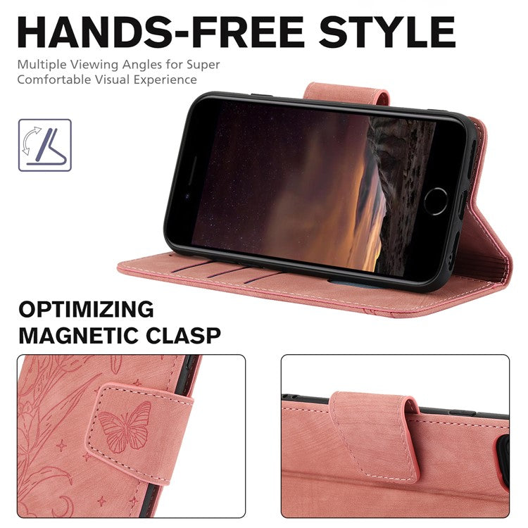 SY-001 For iPhone 16e Case Butterfly Flower Anti-Scratch Leather Phone Cover - Pink