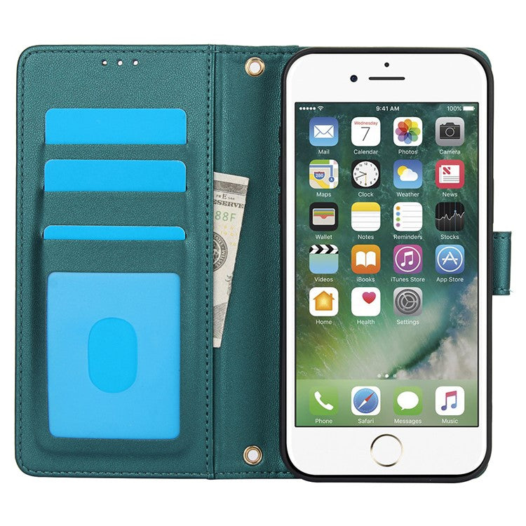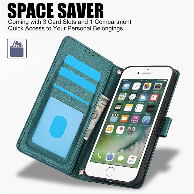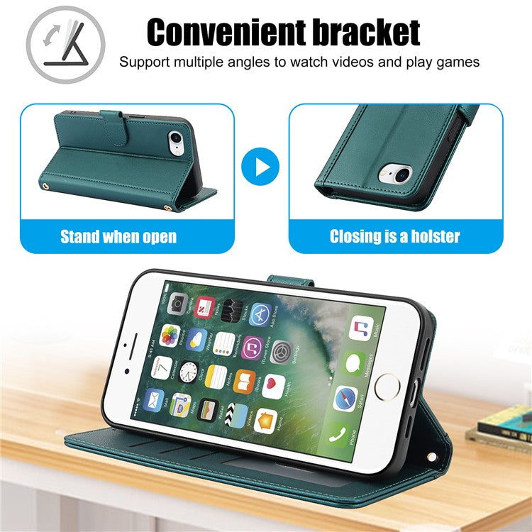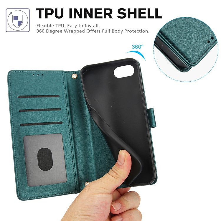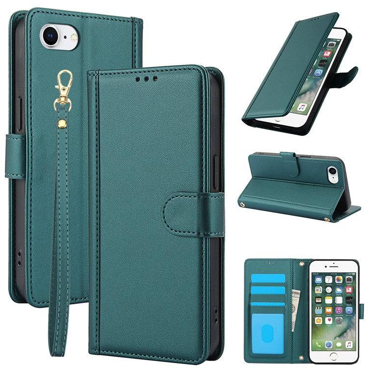 SY-003 For iPhone 16e Case PU Leather Stand View Phone Wallet Cover with Hand Strap - Green