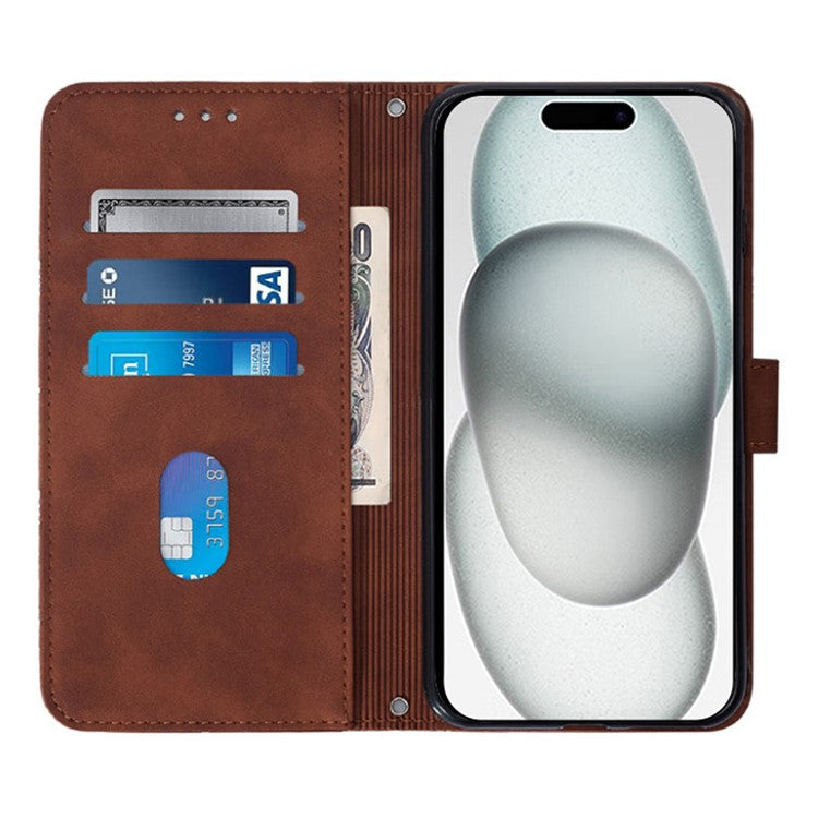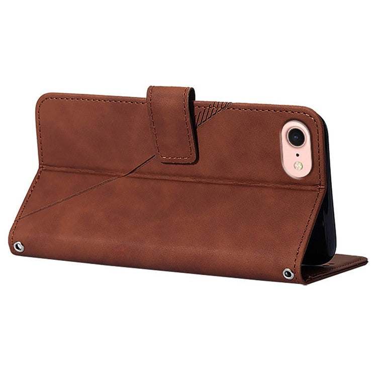 YB Imprinting Series-2 for iPhone SE (2025) Cell Phone Case Stand Magnetic Cover with Shoulder Strap - Brown