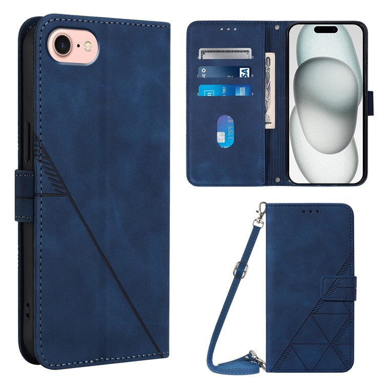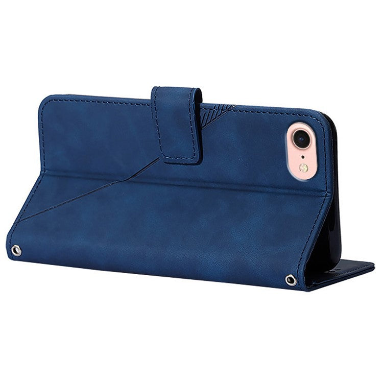 YB Imprinting Series-2 for iPhone SE (2025) Cell Phone Case Stand Magnetic Cover with Shoulder Strap - Sapphire