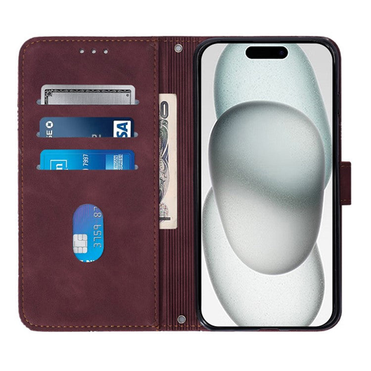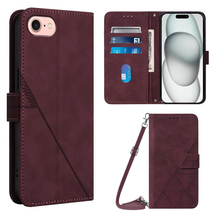 YB Imprinting Series-2 for iPhone SE (2025) Cell Phone Case Stand Magnetic Cover with Shoulder Strap - Wine Red