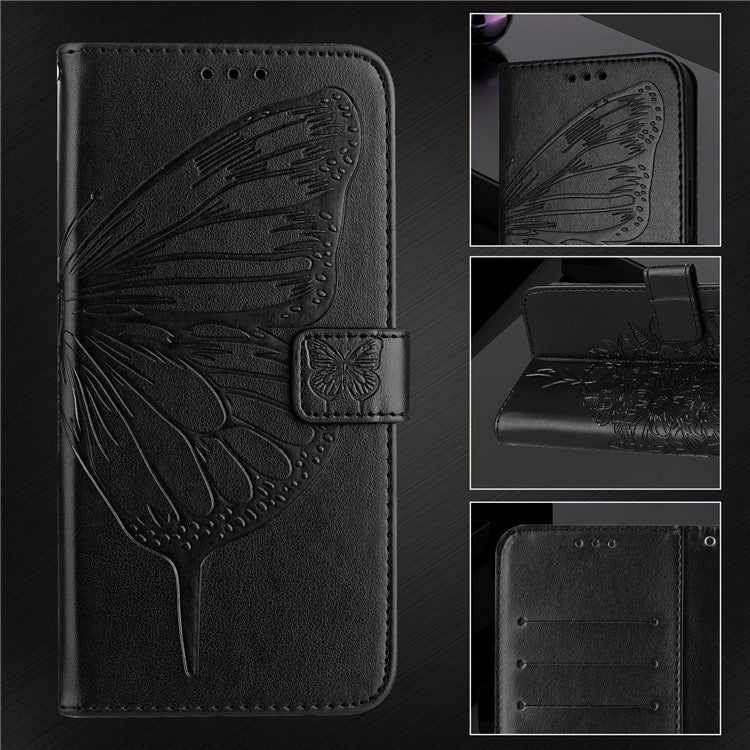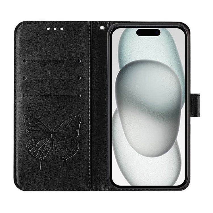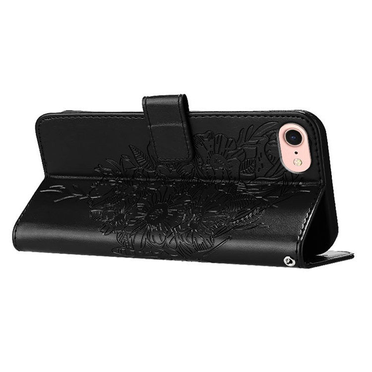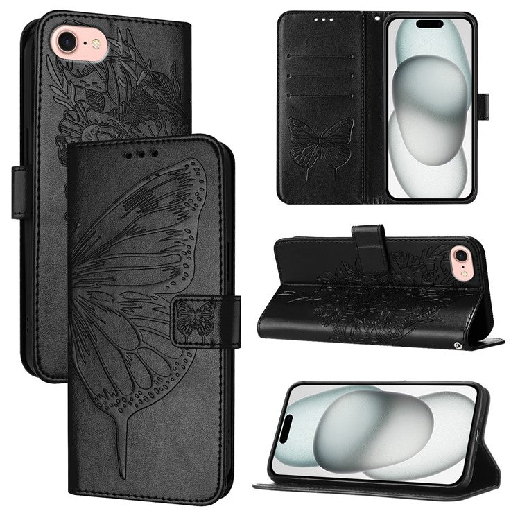 YB Imprinting Series-4 For iPhone SE (2025) Wallet Case Shockproof Leather Phone Cover with Hand Strap - Black