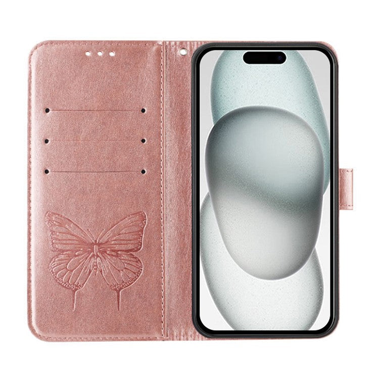YB Imprinting Series-4 For iPhone SE (2025) Wallet Case Shockproof Leather Phone Cover with Hand Strap - Rose Gold