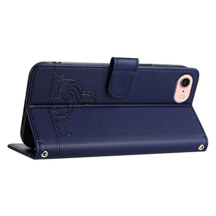 YB Imprinting Series-9 for iPhone SE (2025) Case Cat Mouse Pattern RFID Blocking Leather Cover - Sapphire
