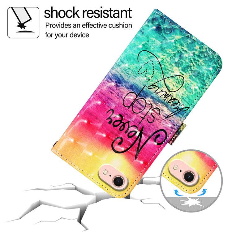 YB Pattern Printing Leather Series-2 For iPhone SE (2025) Protective Case with Hand Strap - Never Stop Dreaming