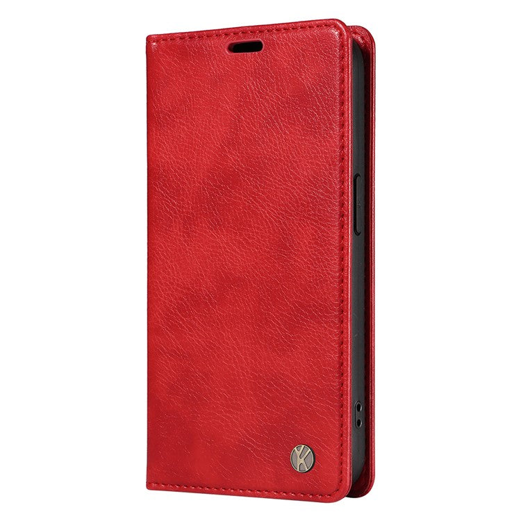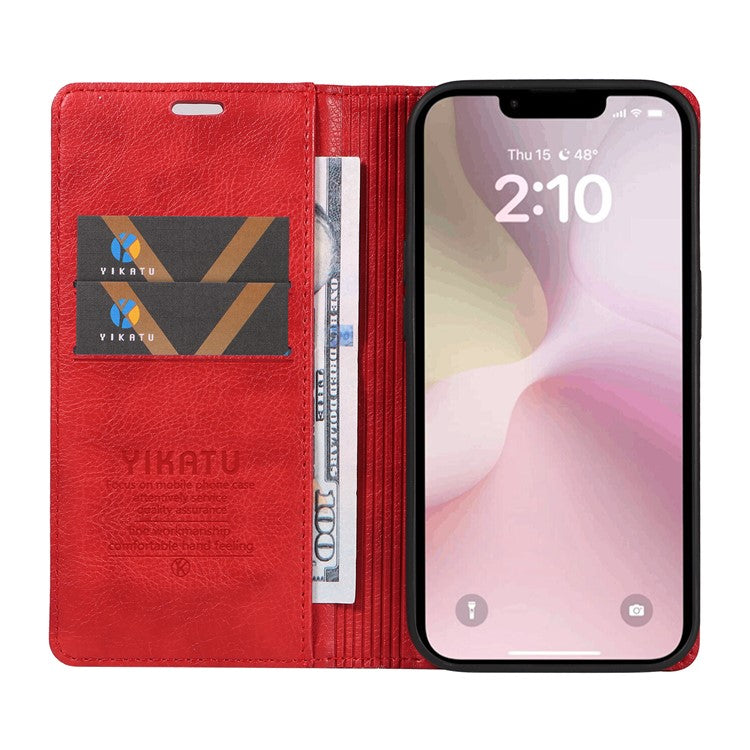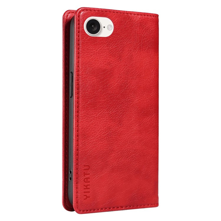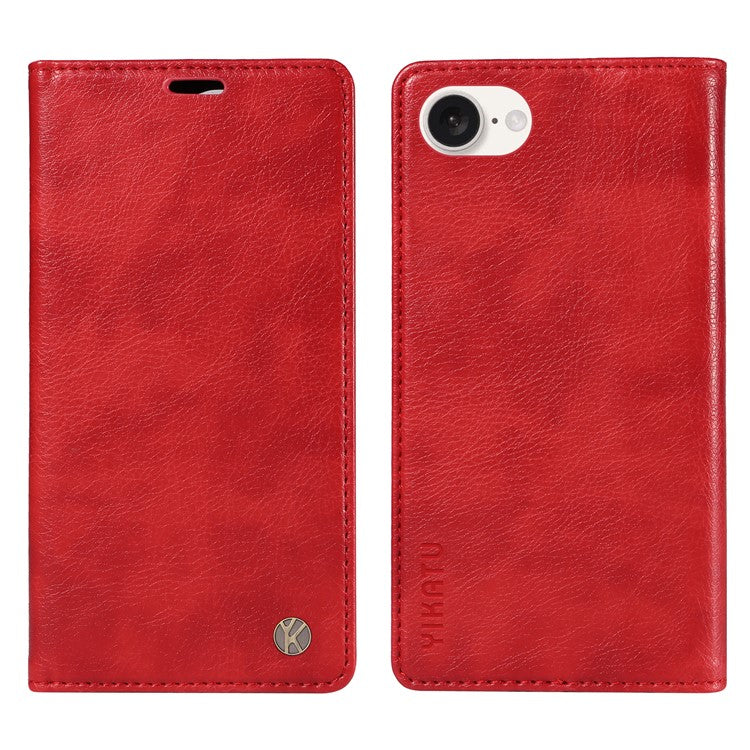 YIKATU YK-006 For iPhone 16e Case Wallet Leather Litchi Texture Magnetic Absorption Phone Cover - Red
