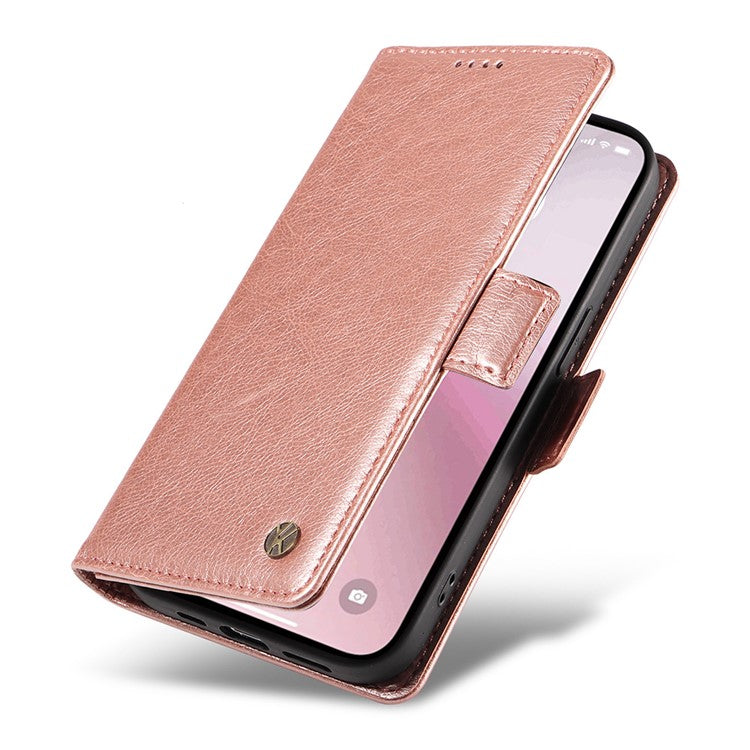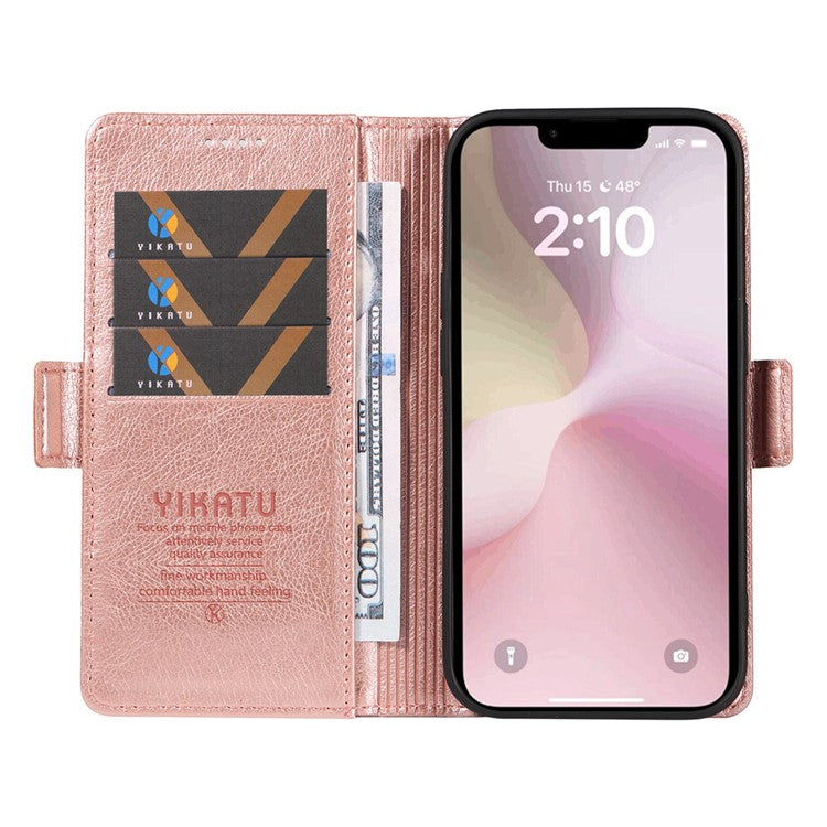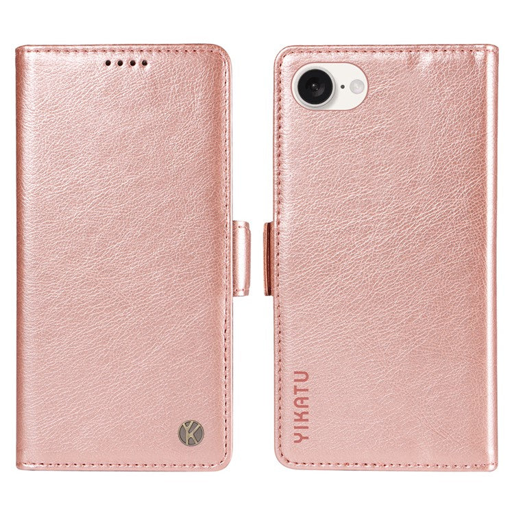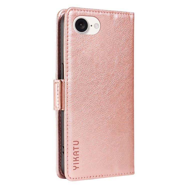 YIKATU YK-007 For iPhone 16e Case PU Leather Litchi Texture Card Holder Folio Magnetic Phone Cover - Rose Gold