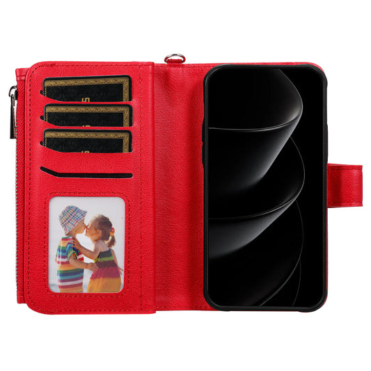 DG.MING M1 Series for iPhone 17 Pro Max Case Kickstand PU Phone Cover with Detachable Wallet - Brown