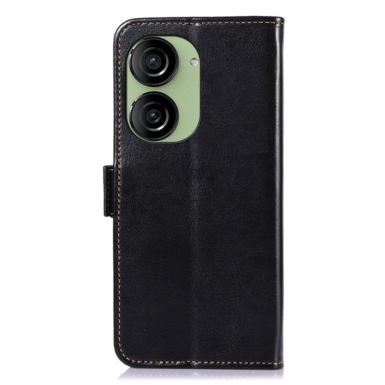ABEEL For Asus Zenfone 10 5G Crazy Horse Texture Phone Case PU Leather Wallet Stand Cover - Black