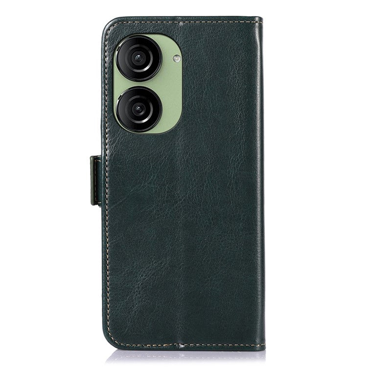 ABEEL For Asus Zenfone 10 5G Crazy Horse Texture Phone Case PU Leather Wallet Stand Cover - Green