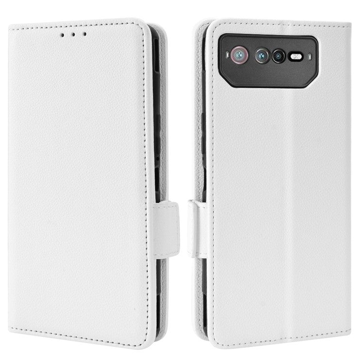 For Asus ROG Phone 6 5G / Phone 6 Pro 5G PU Leather Dual Magnetic Clasp Flip Cover Stand Feature Litchi Texture Wallet Purse Case - White