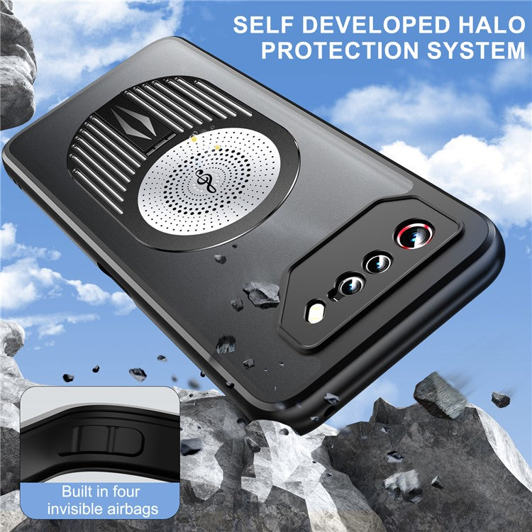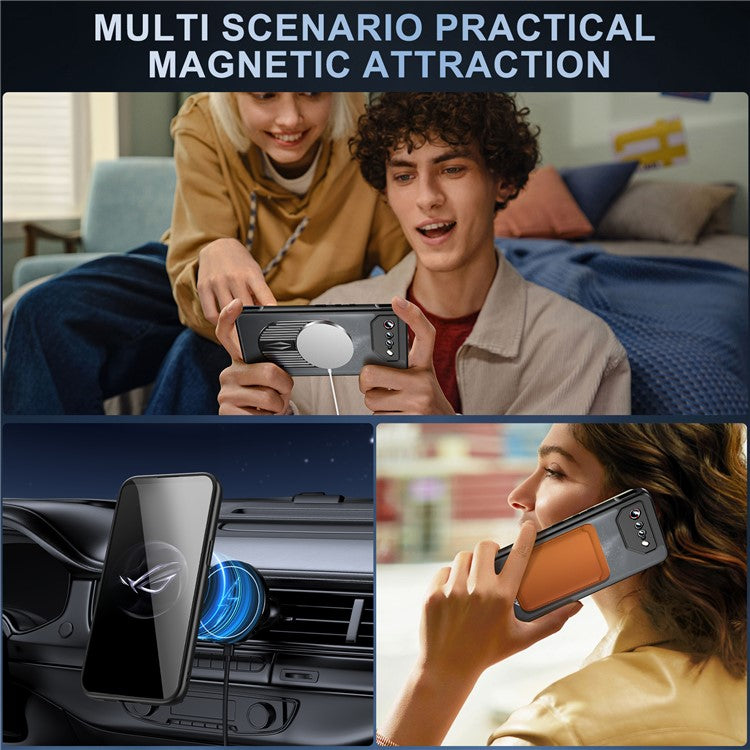 For Asus ROG Phone 7 5G Magnetic Case Heat Dissipation Aromatherapy Kickstand Silicone+PC Phone Cover - Black