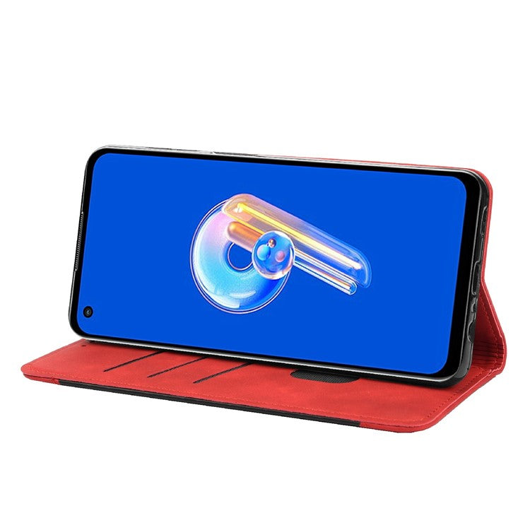 For Asus Zenfone 9 5G Anti-drop Splicing Phone Case PU Leather Magnetic Auto-absorbed Skin-touch Feeling Phone Wallet Cover with Stand - Red