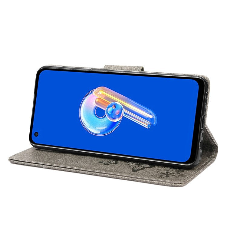 For Asus Zenfone 9 5G Magnetic Clasp PU Leather Phone Case Big Butterflies Flower Pattern Imprinting Anti-scratch Phone Cover Wallet Stand with Strap - Grey