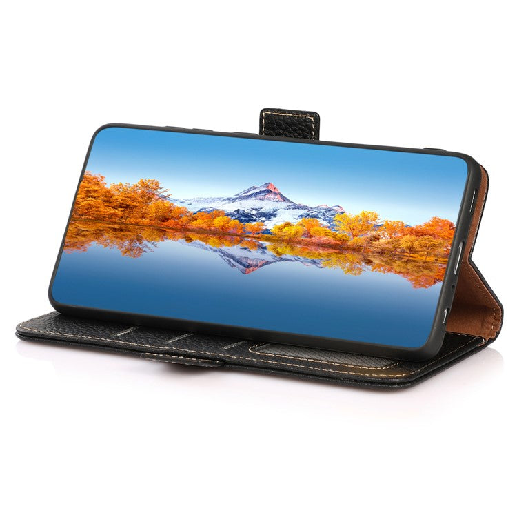 KHAZNEH For Asus ROG Phone 7 5G Wallet Case with RFID Blocking Genuine Cow Leather Stand Phone Cover - Black