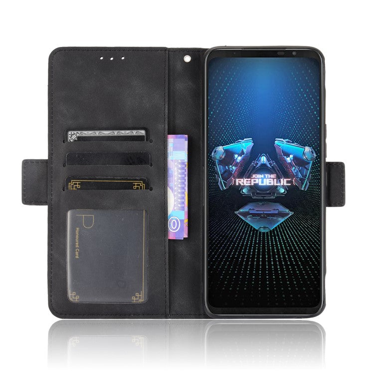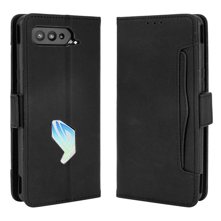 Leather Wallet Protective Case with Multiple Card Slots for Asus ROG Phone 5 - Black