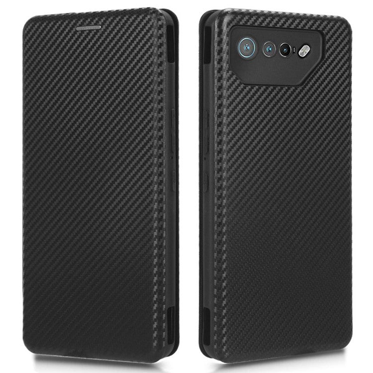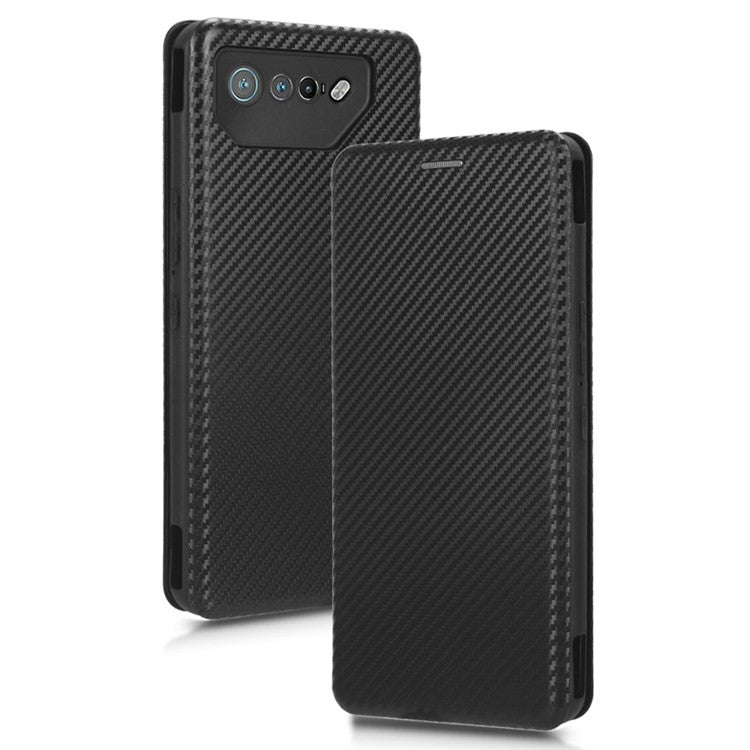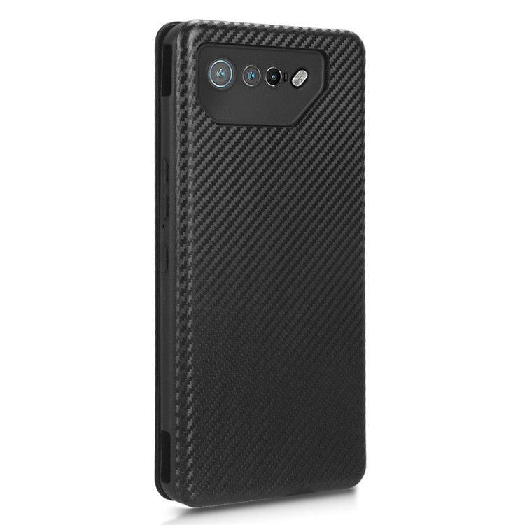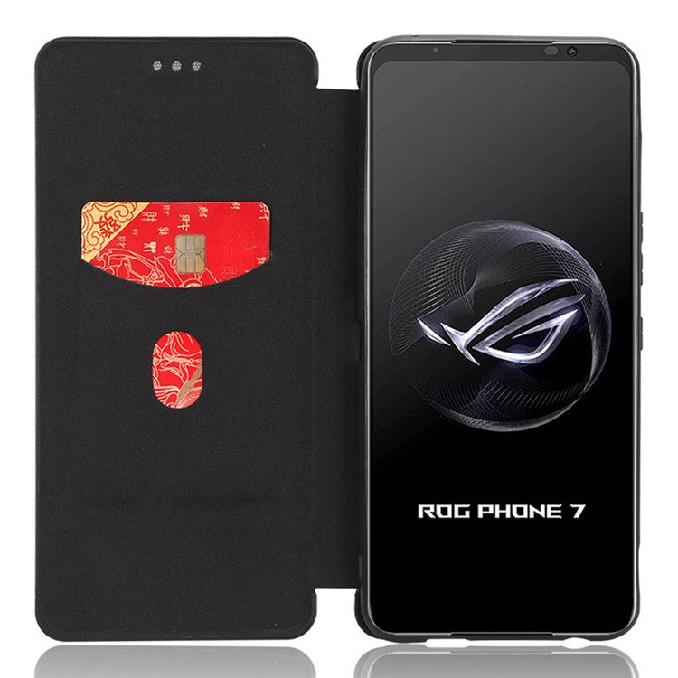 Stand Cover for Asus ROG Phone 7 5G / 7 Ultimate 5G Carbon Fiber Texture Card Slot PU Leather Phone Case - Black