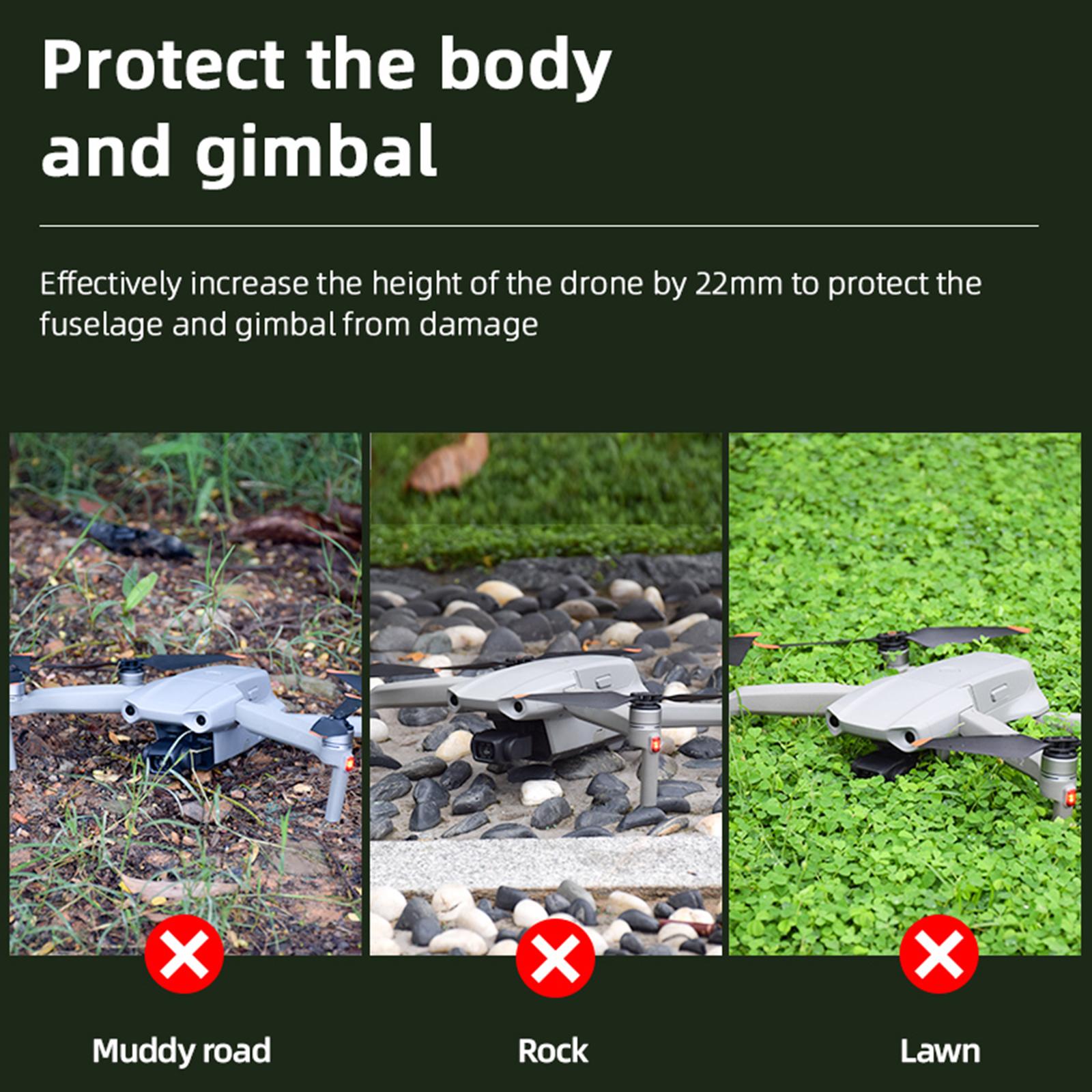 Increase Height: Effectively increase the height of the drone by 22mm to prevent damaging the body and gimbal when the drone is taking off or landing.