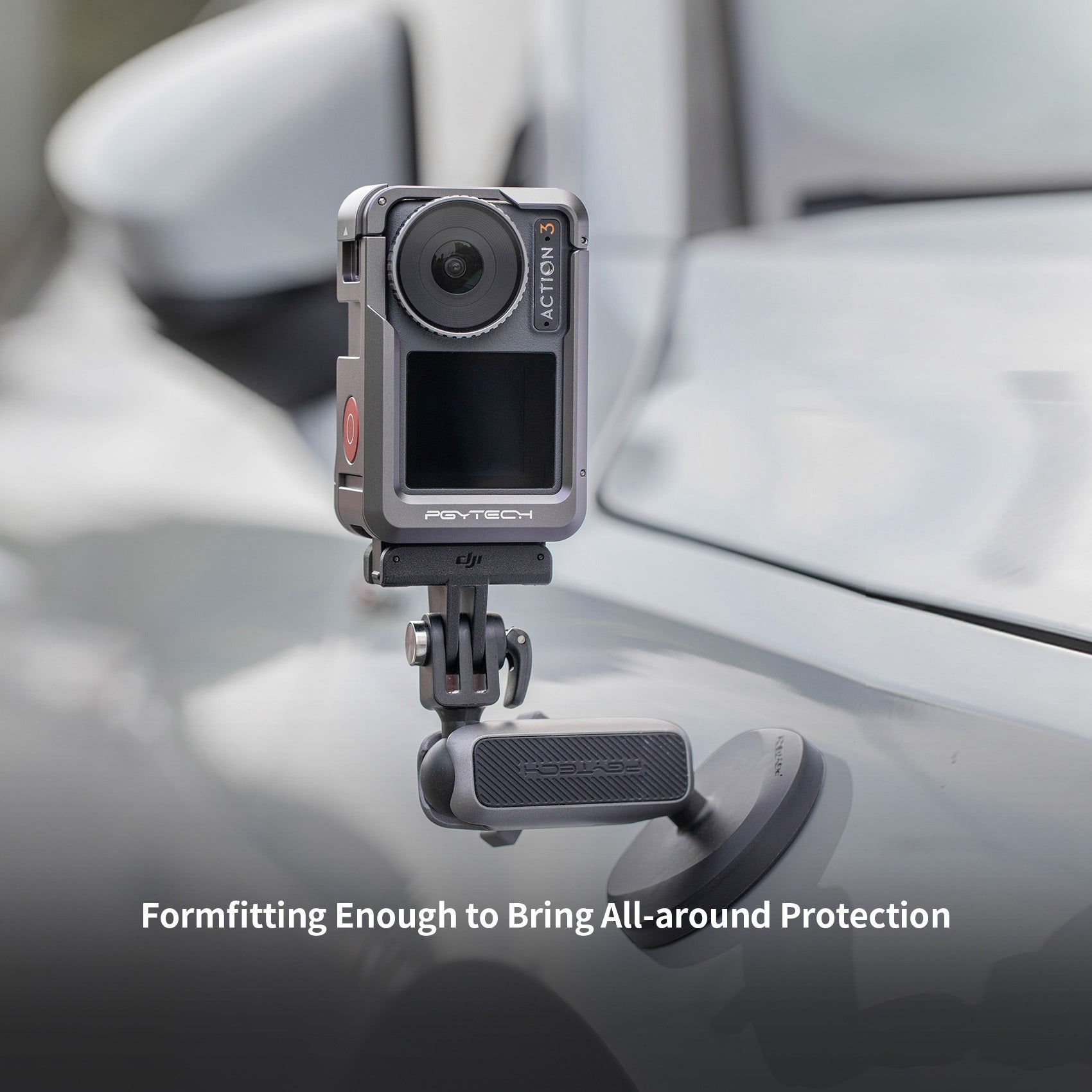 - This cage is specially designed for OSMO Action 3 and is an ideal choice for professional creation. The bottom retains the magnetic quick assembly design of the host, which can be quickly connected for DJI official accessories