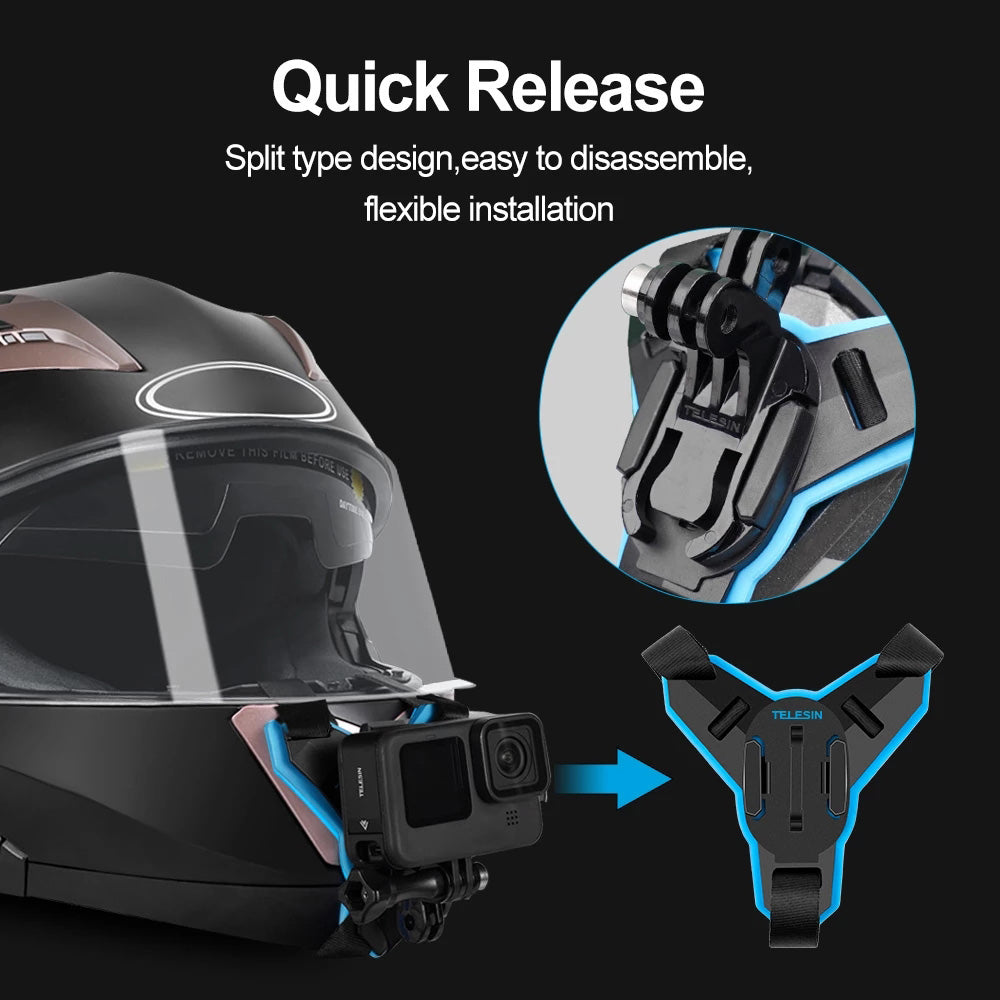 - Various action cameras can be fixed on the chin of the motorcycle helmet to provide the first shooting angle