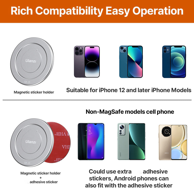 - If use non-magnetic models cell phone, could use extra adhesive sticker, Android phones can also fit with the adhesive sticker