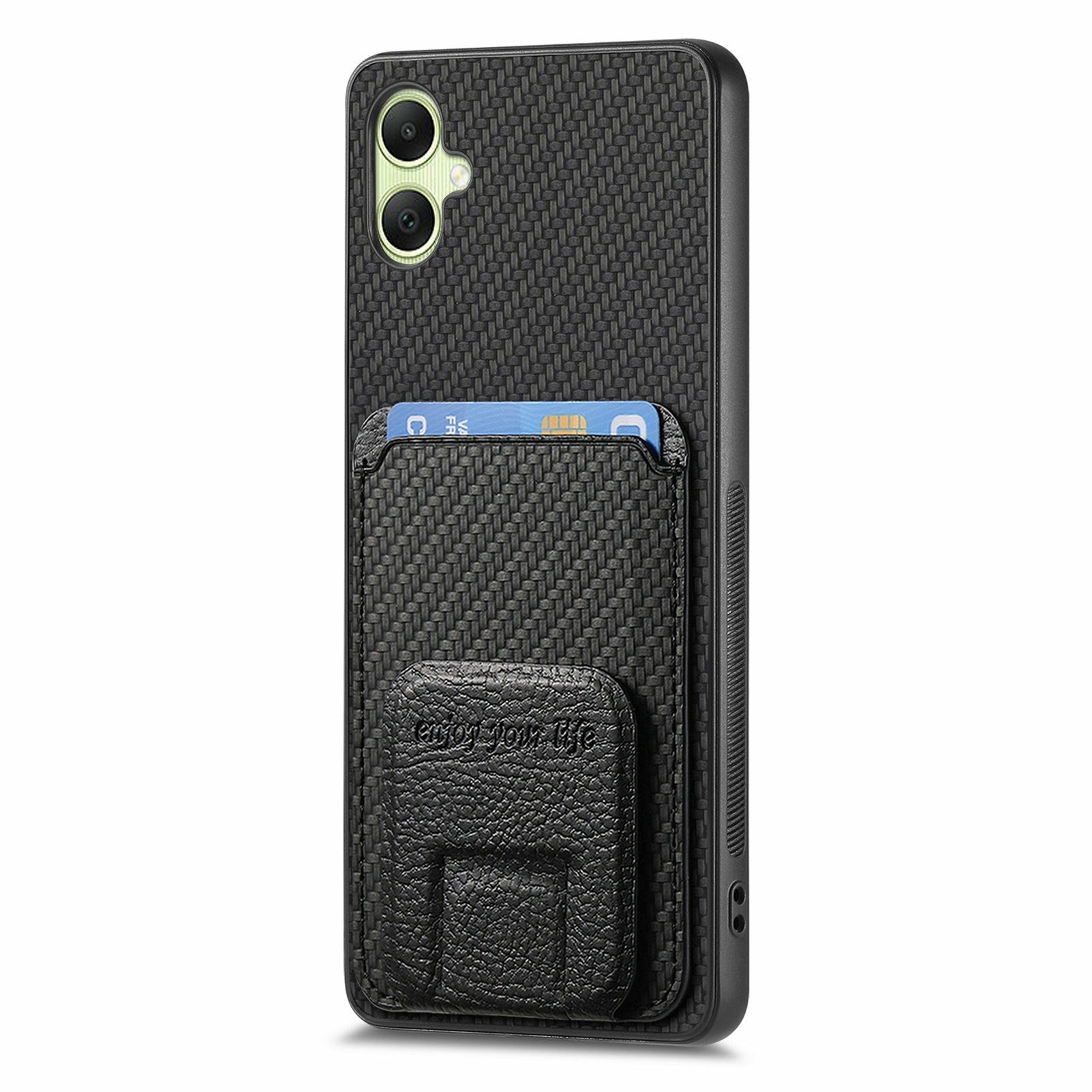 For Samsung Galaxy A06 Case Card Holder Carbon Fiber Texture Leather Coated TPU Phone Cover - Black
