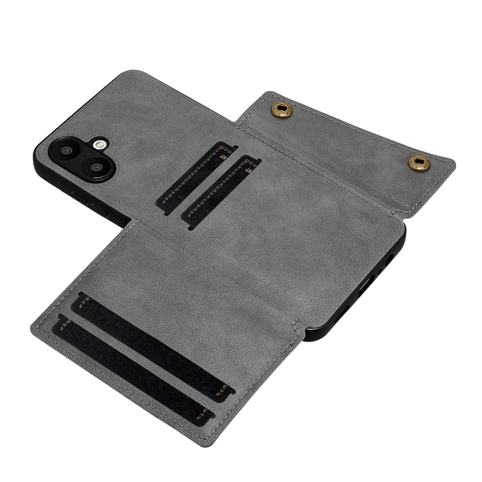 For Samsung Galaxy A06 Case Card Slots Kickstand Leather+TPU Phone Cover - Grey