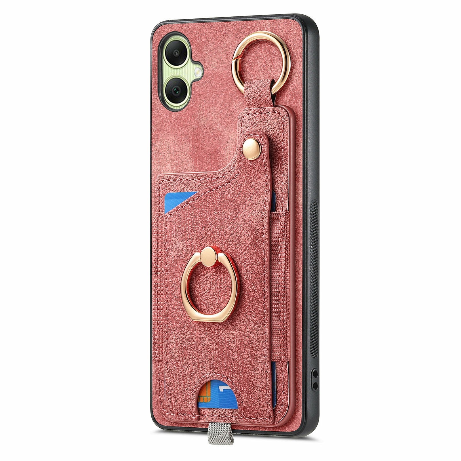 For Samsung Galaxy A06 Case Card Slots Leather+TPU Phone Cover with Ring Buckle - Pink