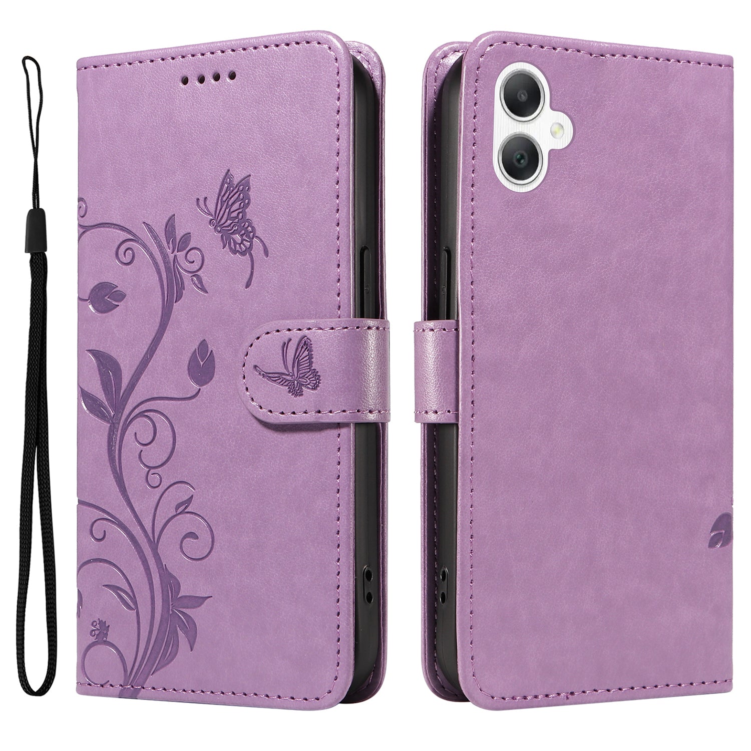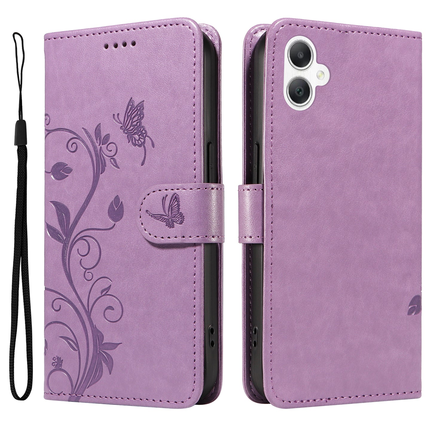 For Samsung Galaxy A06 Case Flower Pattern PU Leather Wallet Phone Cover - Light Purple
