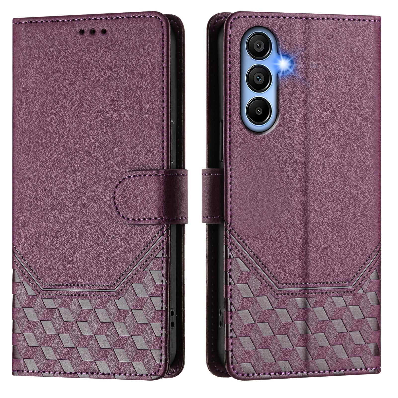 ?Premium Material?Crafted from a PU leather + TPU inner case, features an imprinted honeycomb pattern, it offers a comfortable touch feeling and long-lasting durability