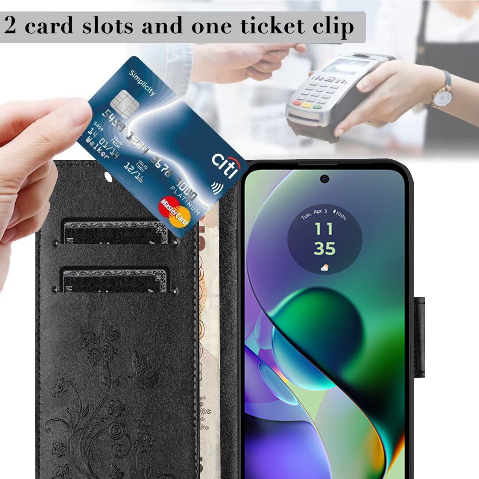 For Samsung Galaxy A06 Case Imprinted Mini Butterfly Leather Wallet Phone Cover - Black