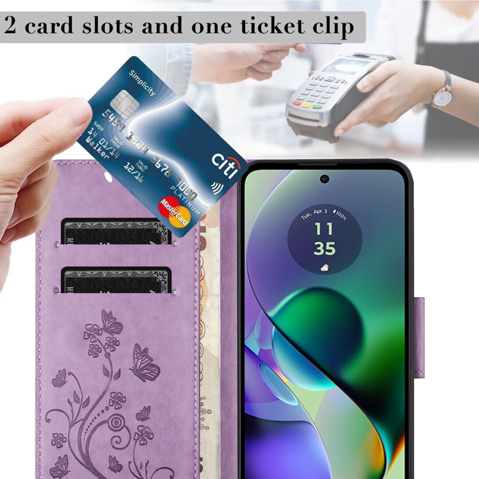 For Samsung Galaxy A06 Case Imprinted Mini Butterfly Leather Wallet Phone Cover - Purple