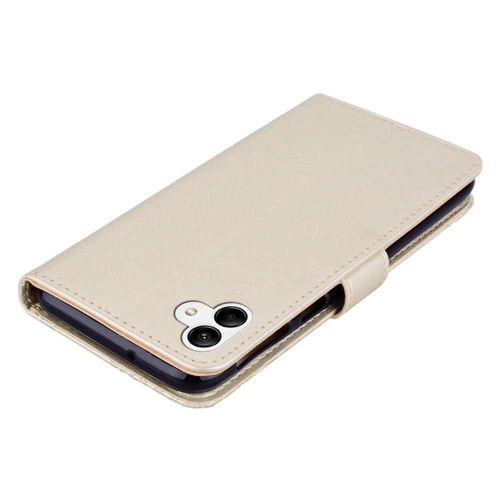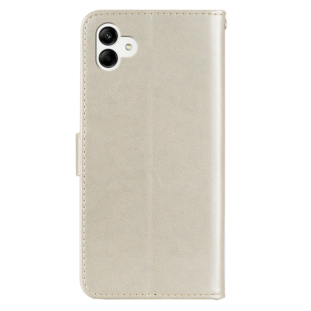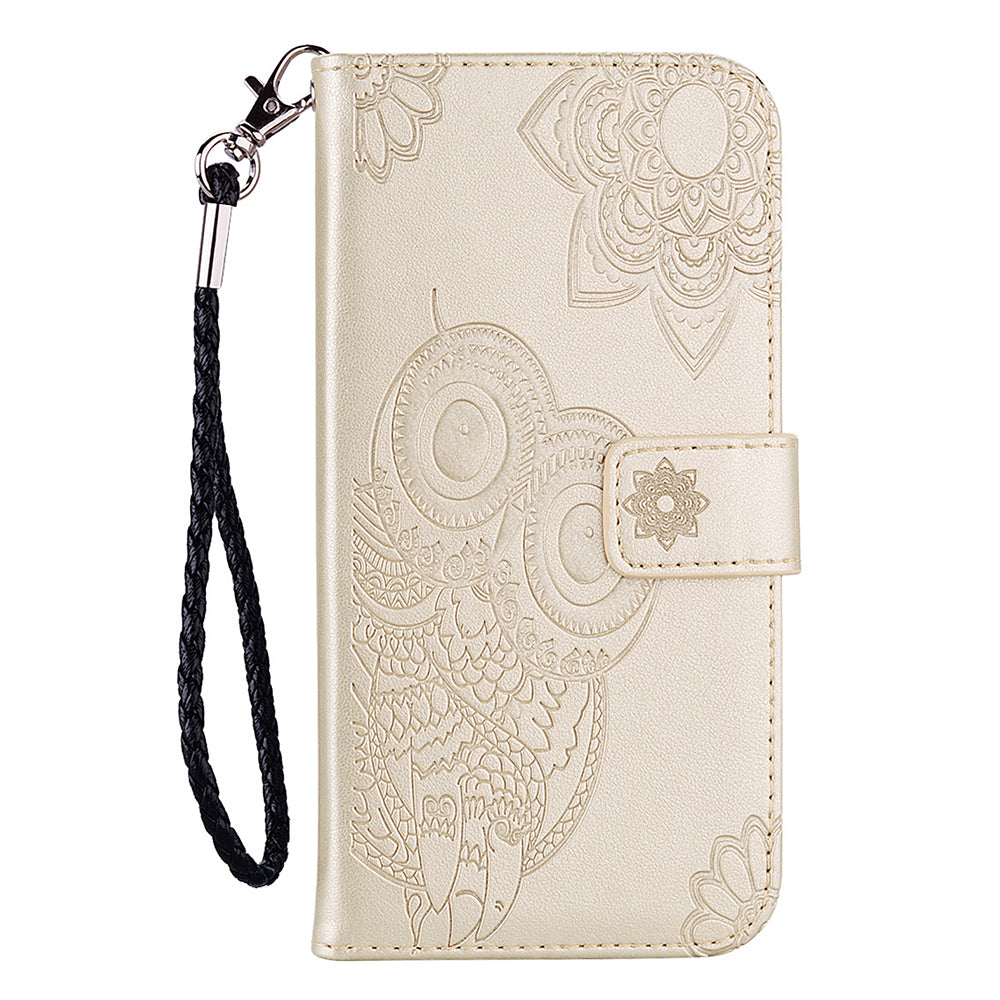 For Samsung Galaxy A06 Case Owl Flower Imprinted Leather Cover Wallet with Strap - Gold
