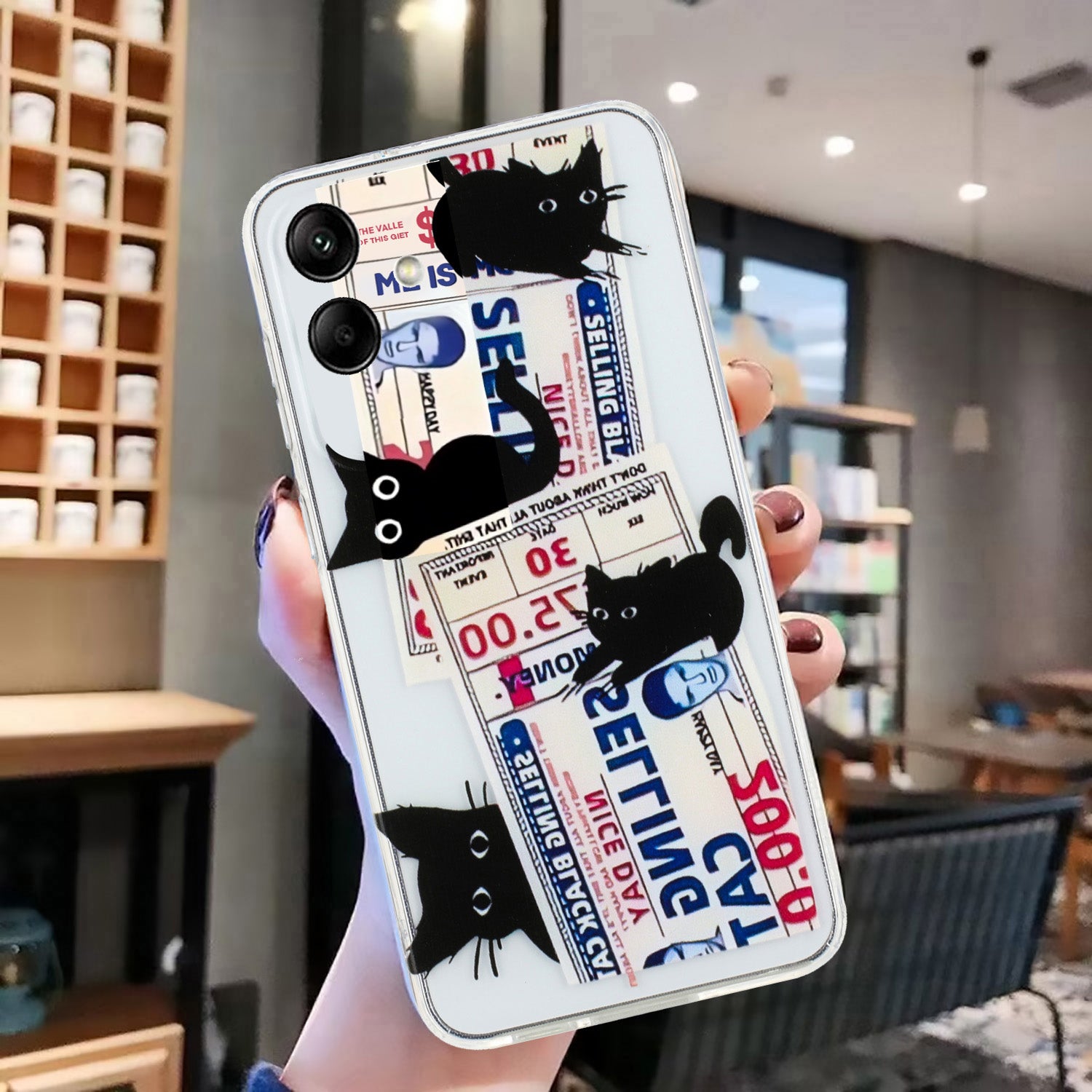For Samsung Galaxy A06 Case Pattern Printing Soft TPU Back Phone Cover - 4 Black Cats