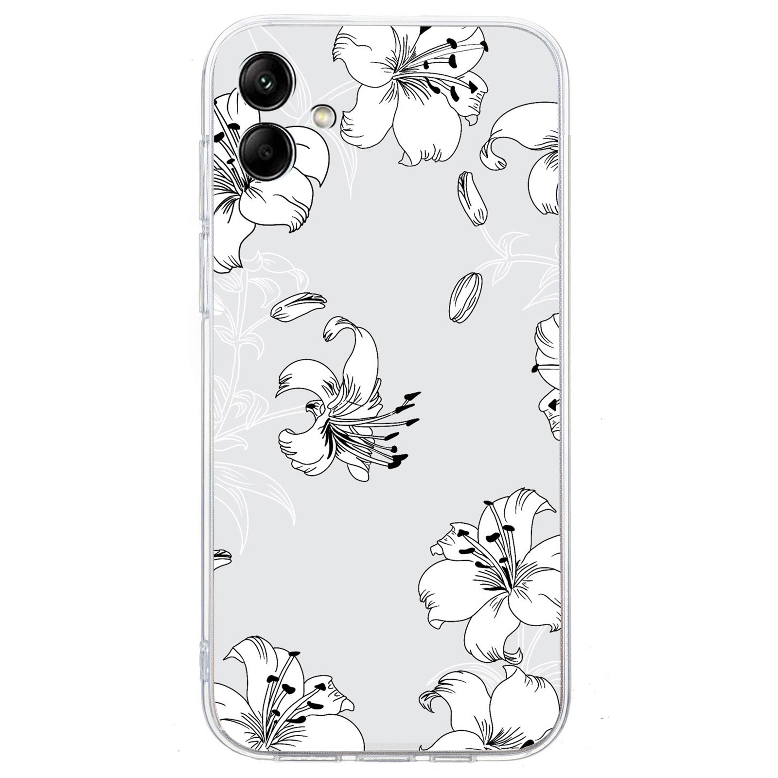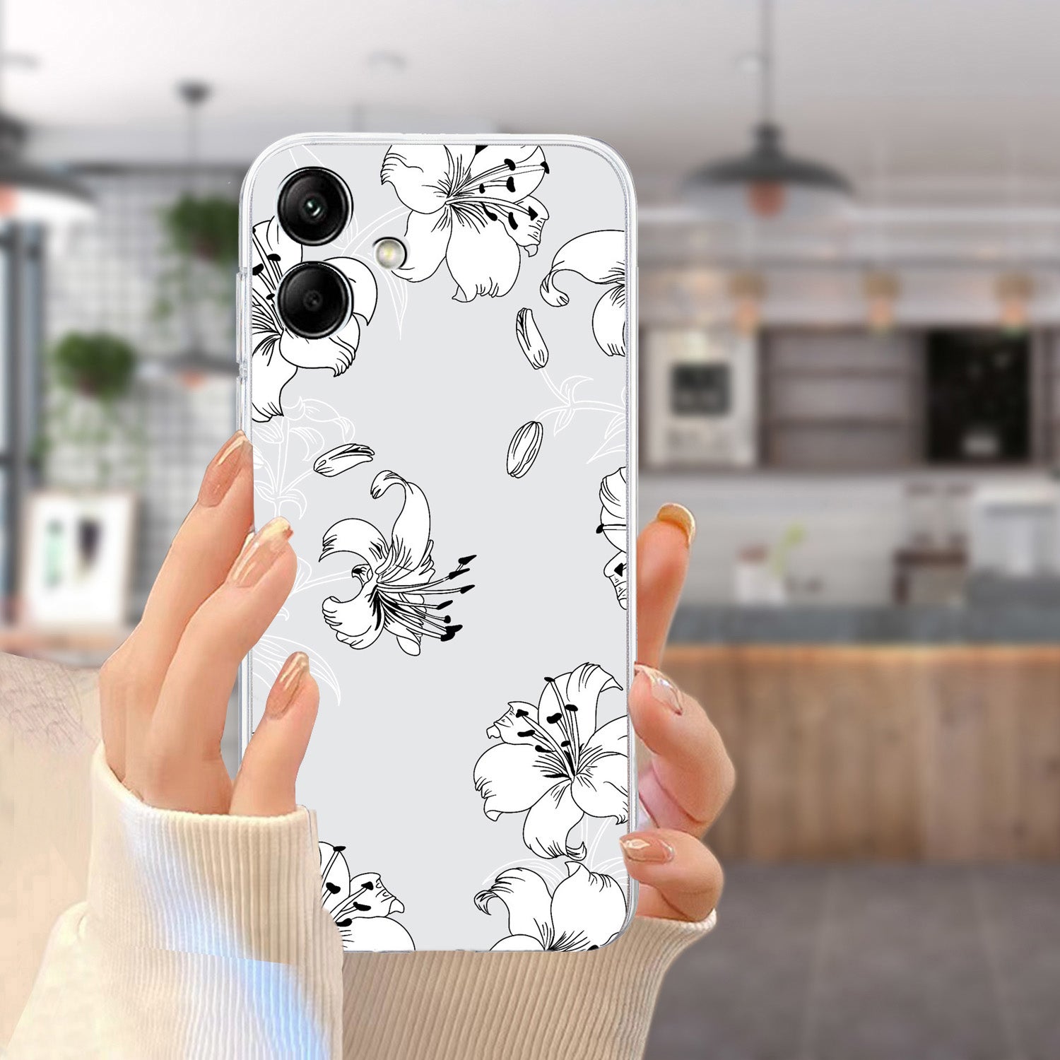For Samsung Galaxy A06 Case Pattern Printing Soft TPU Back Phone Cover - Line White Flower