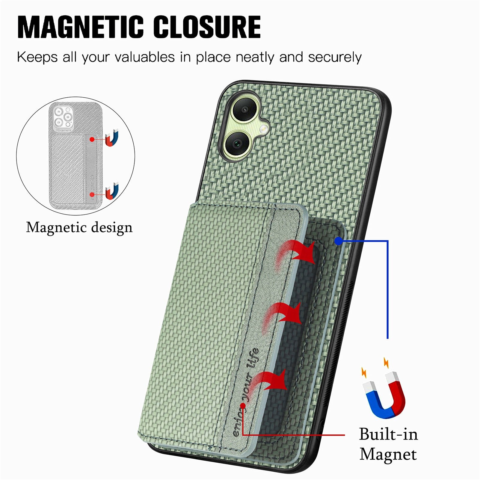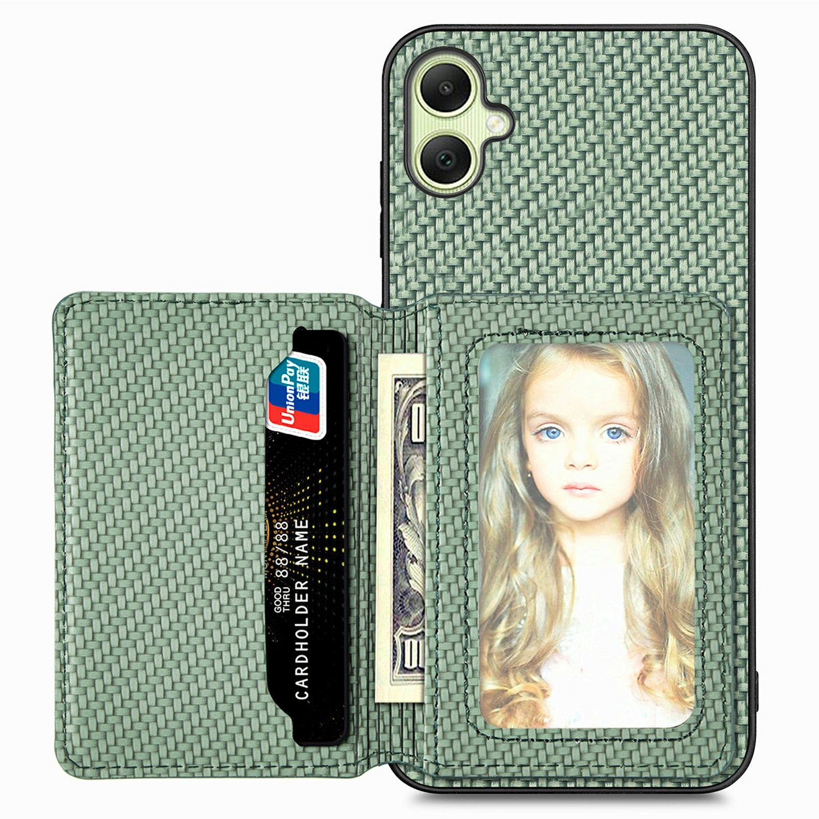 For Samsung Galaxy A06 Case RFID Blocking Card Holder Carbon Fiber Leather+PC+TPU Phone Cover - Green
