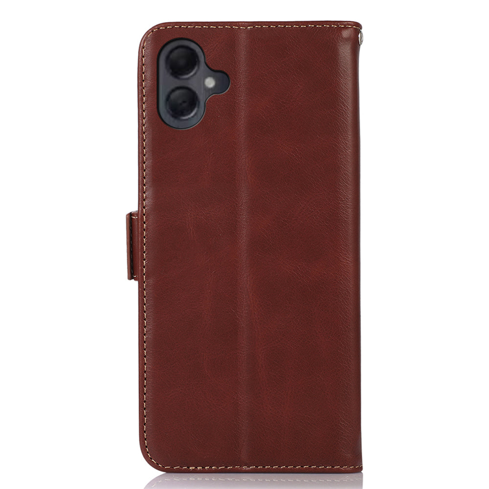 For Samsung Galaxy A06 Case RFID Blocking Genuine Cow Leather Wallet Phone Cover - Brown