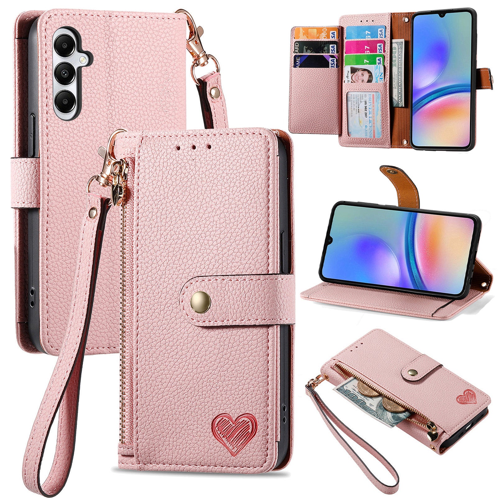 For Samsung Galaxy A06 Case RFID Blocking Zipper Pocket Leather Wallet Phone Cover - Pink
