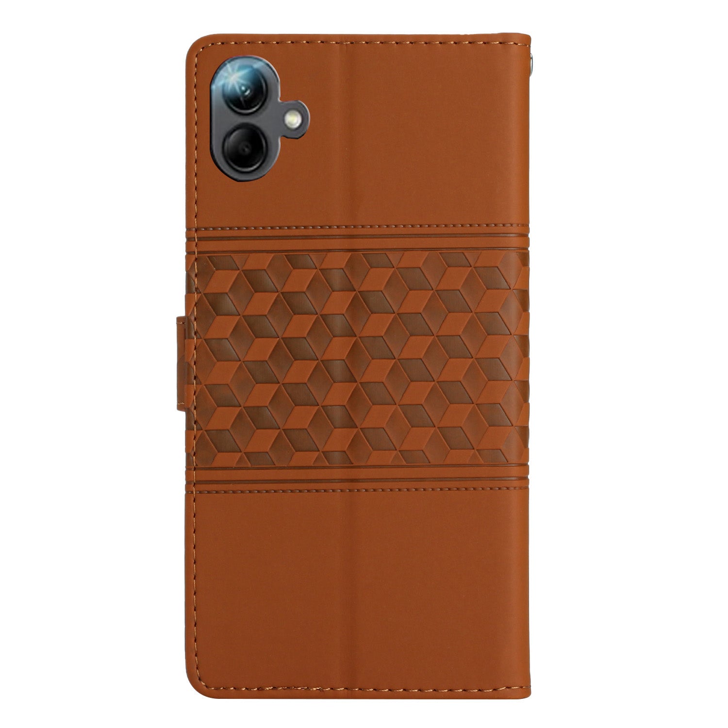 For Samsung Galaxy A06 Case Rhombus Leather Horizontal Flip Phone Cover - Brown