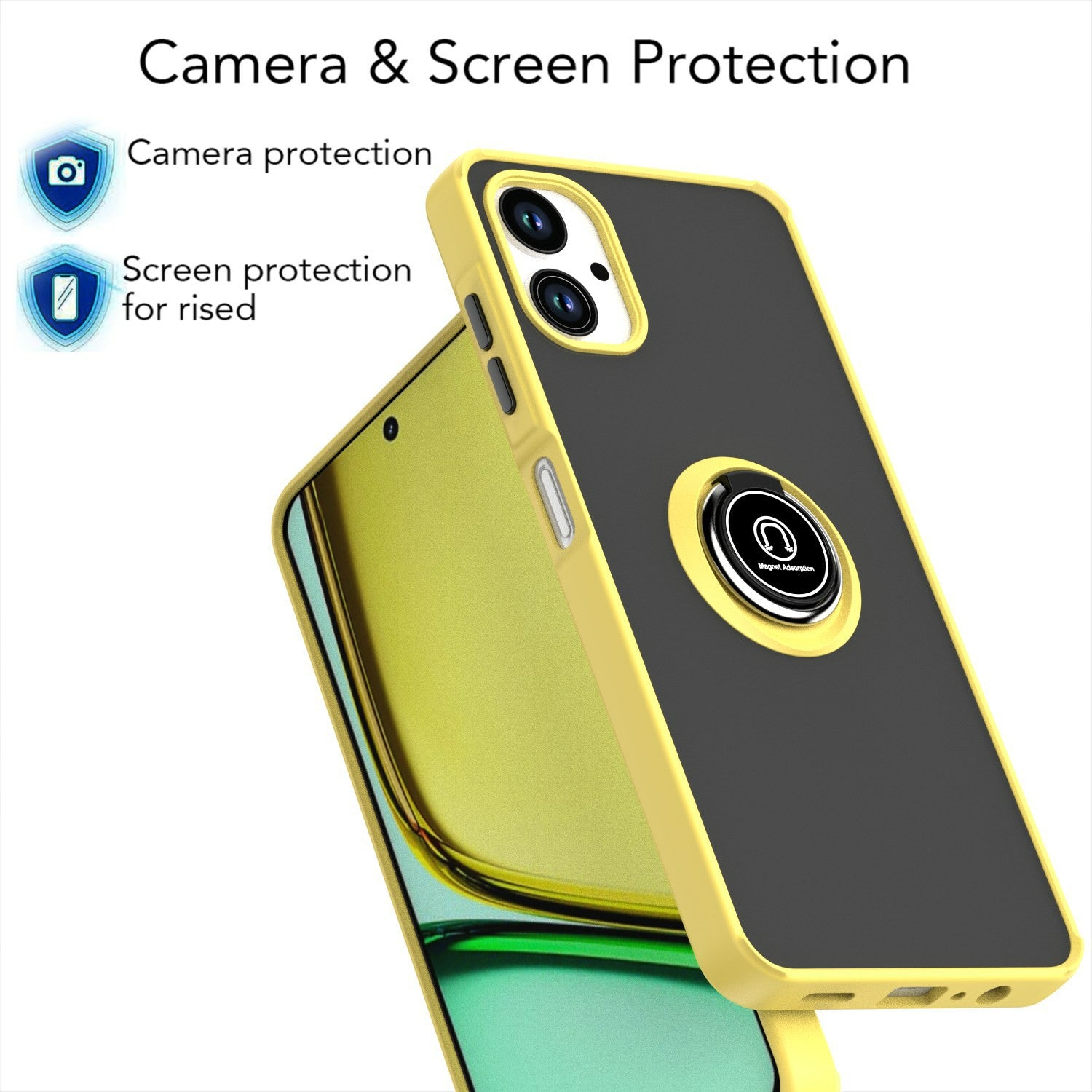 For Samsung Galaxy A06 Case Ring Holder Kickstand TPU+Acrylic Phone Cover - Yellow