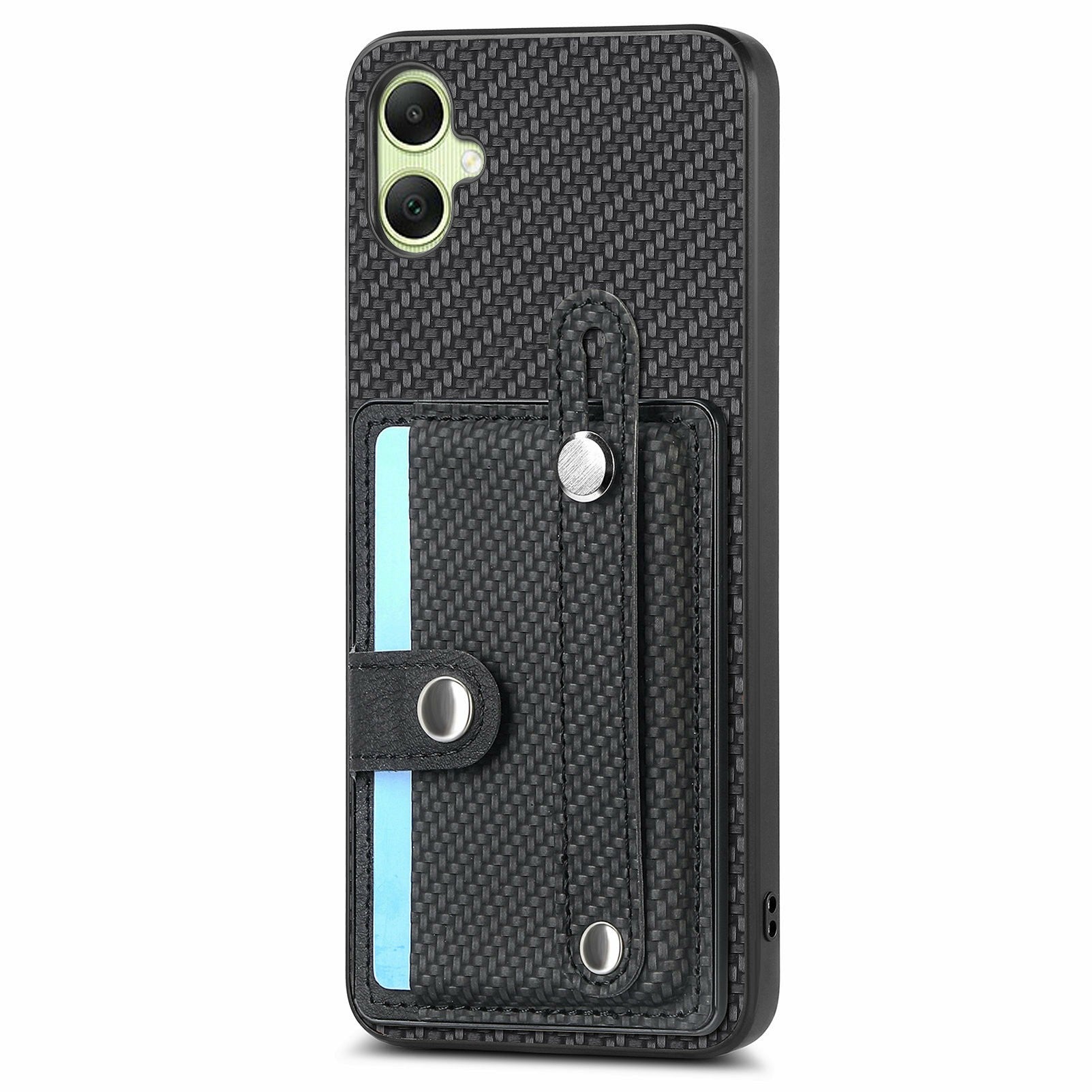For Samsung Galaxy A06 Case Wristband Anti-Drop Leather Back Cover Card Holder - Black