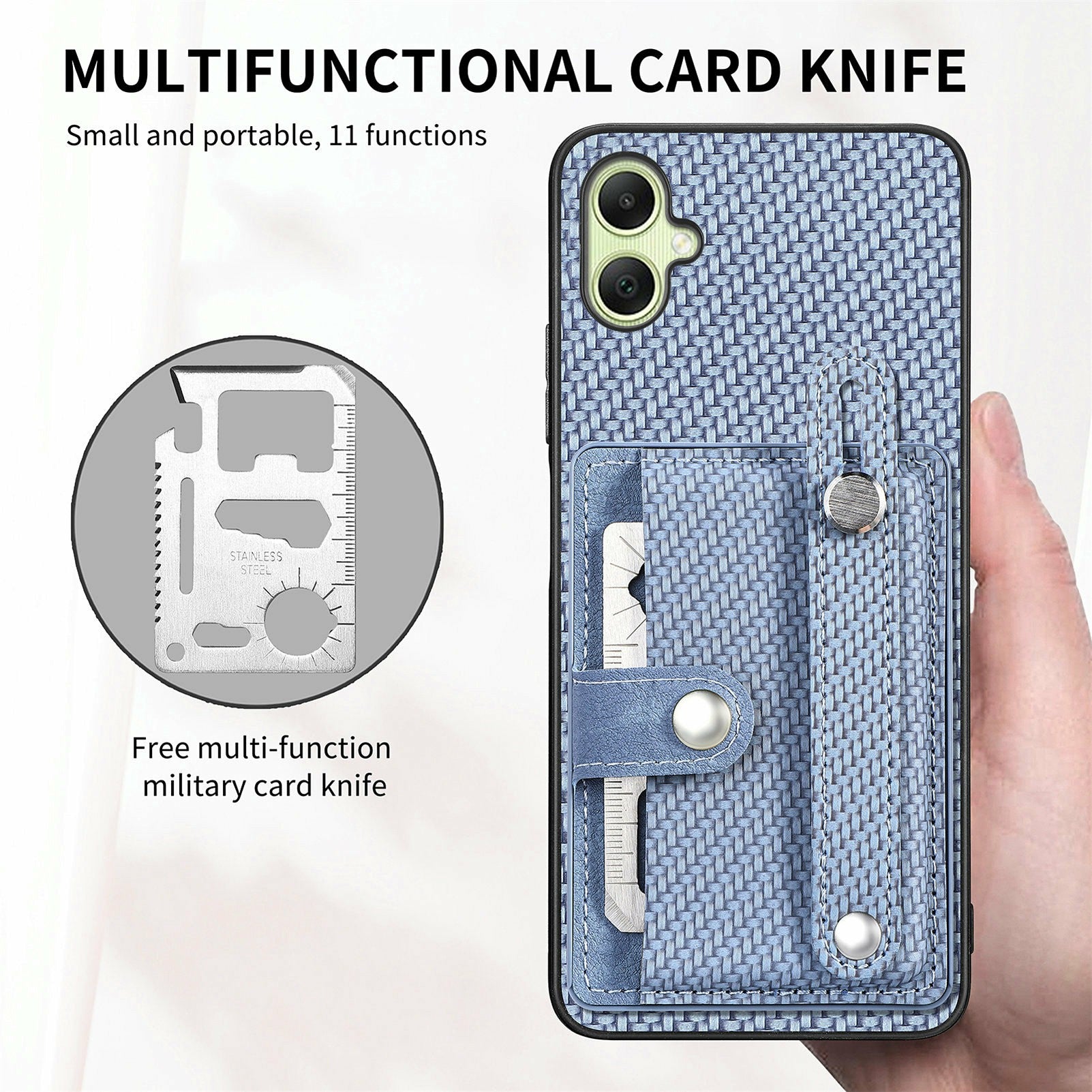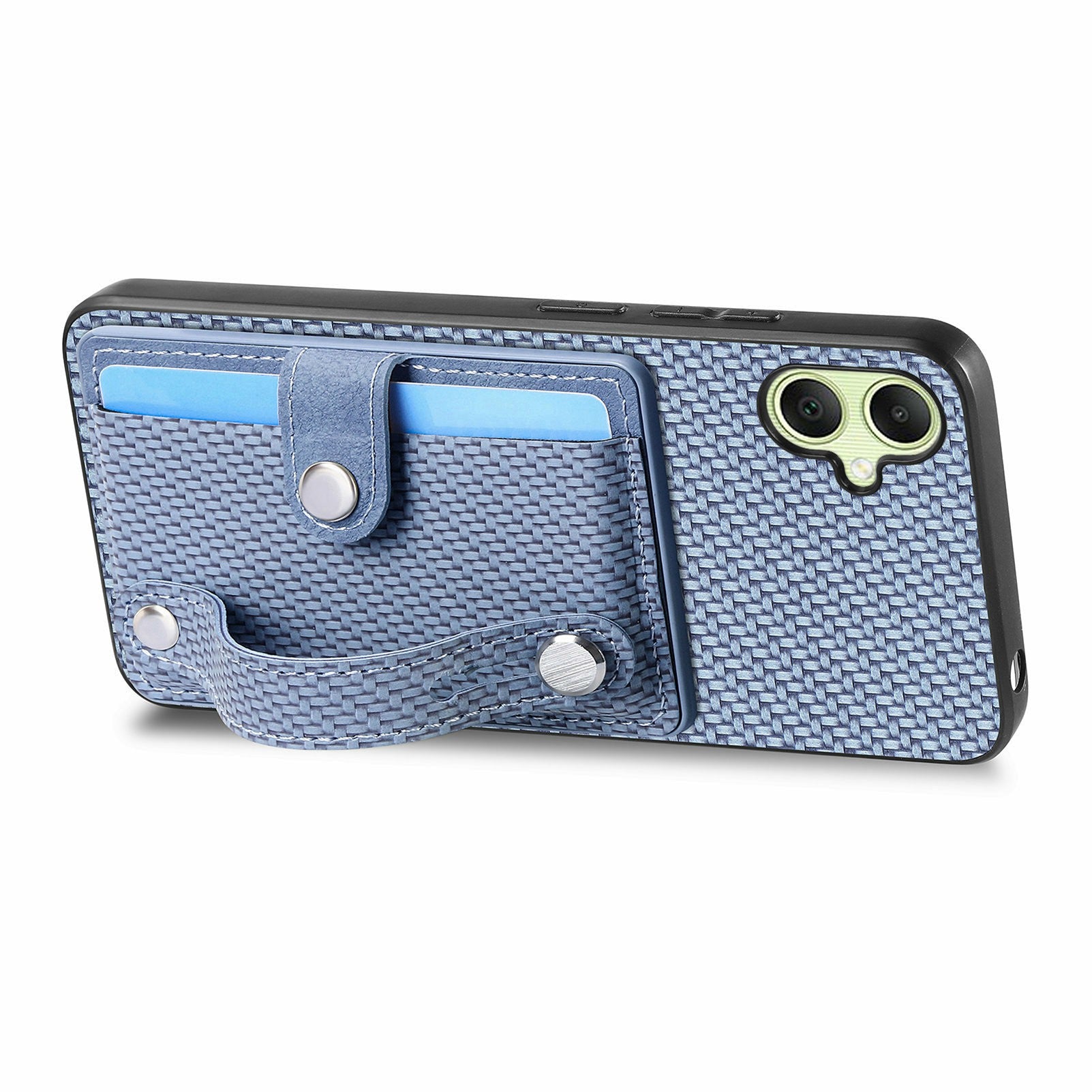 For Samsung Galaxy A06 Case Wristband Anti-Drop Leather Back Cover Card Holder - Blue